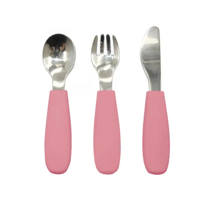 Accessoires Repas Silicone – Set 3 Couverts Misty Rose