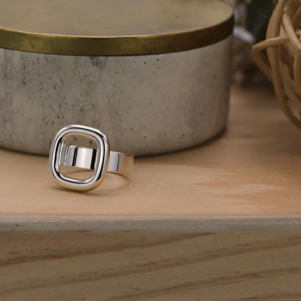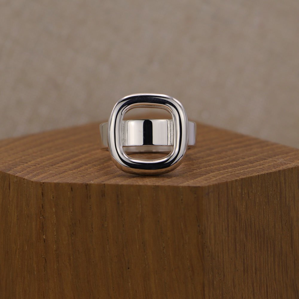 Son motif carré aux coins arrondis adossé à une bague « ruban » donne beaucoup de caractère et d’élégance à celle-ci. Cette bague large, par sa sobriété et son aspect original, ne manquera pas de mettre en valeur vos tenues, qu’elles soient chics ou décontractées. De plus, avec ses coins arrondis, elle sera très agréable à porter.