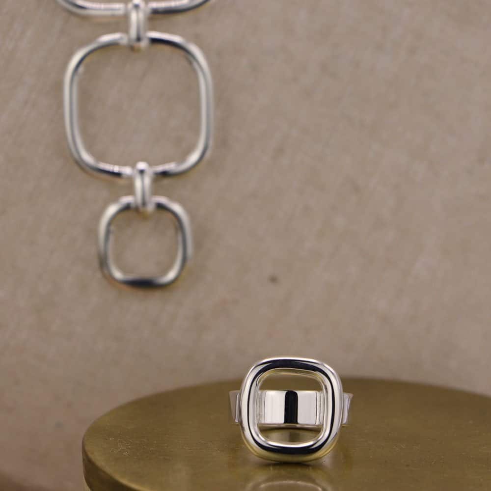 Bague ruban motif carré en argent massif pour femme. Poids 7,7g.