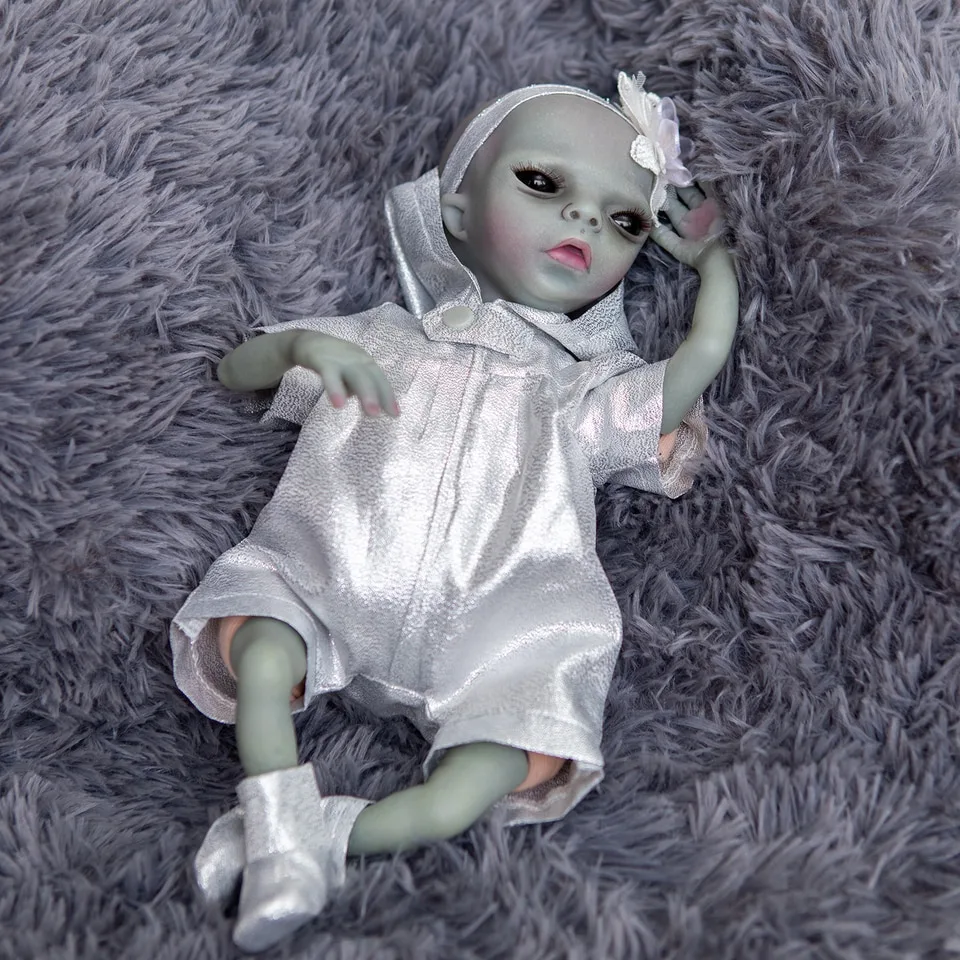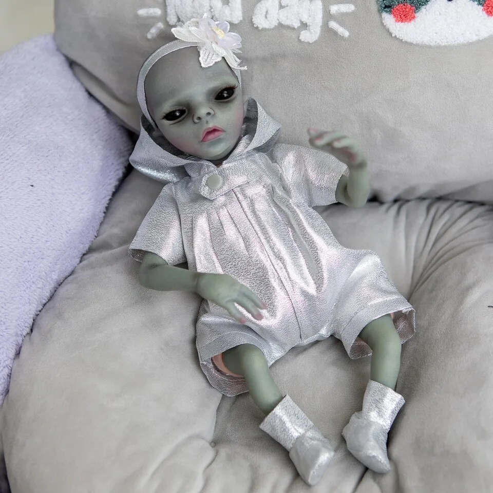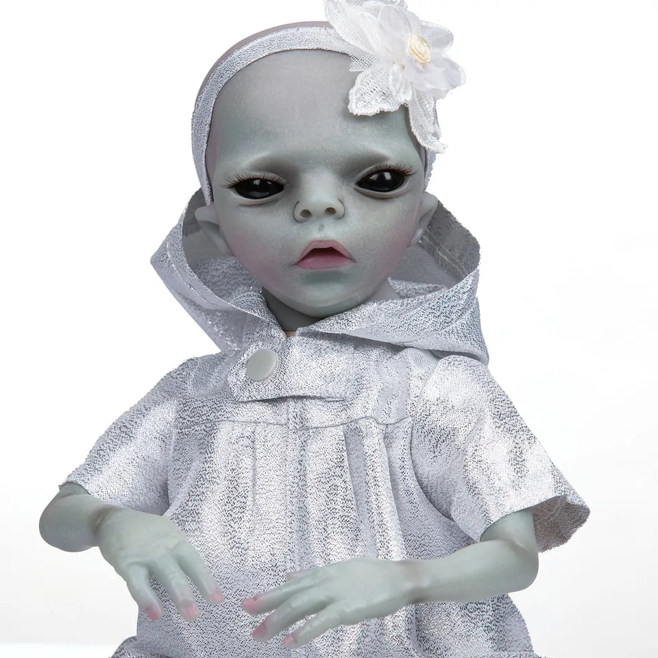 Découvrez une création unique pour votre collection de bébés reborn : Sigourney, une adorable bébé fille alien. Sa particularité lui apporte une touche de singularité que les collectionneurs de poupées apprécieront.