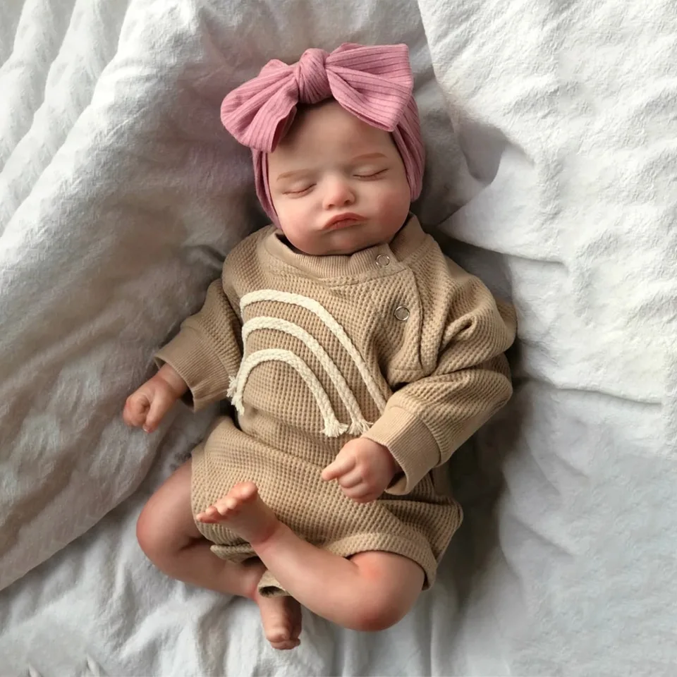 - Yeux : Les yeux d’Abbie sont fermés et agrémentés de délicats cils implantés, ajoutant une touche de réalisme à son expression douce.