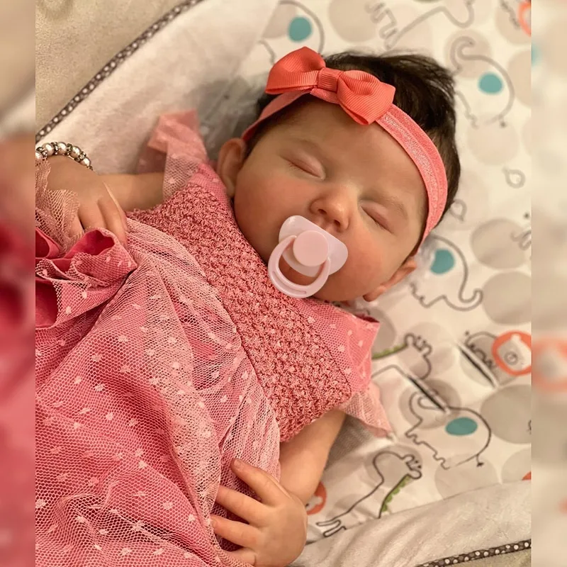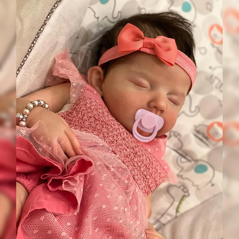 Découvrez le bébé reborn fille Ambre entièrement faite à la main avec une peinture multicouche pour un réalisme époustouflant. Mesurant 20 pouces (environ 50 cm), elle est dotée de cheveux de haute qualité enracinés à la main, très réalistes. Ses yeux sont fermés, comme un vrai bébé endormi.