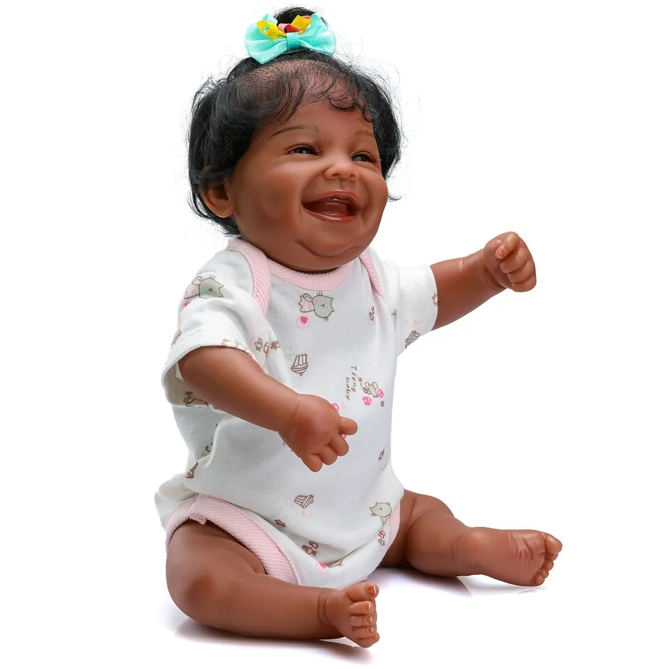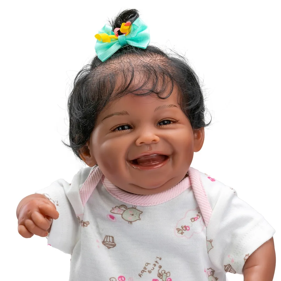 Découvrez Bintou, un adorable bébé reborn fille métisse au grand sourire rayonnant!