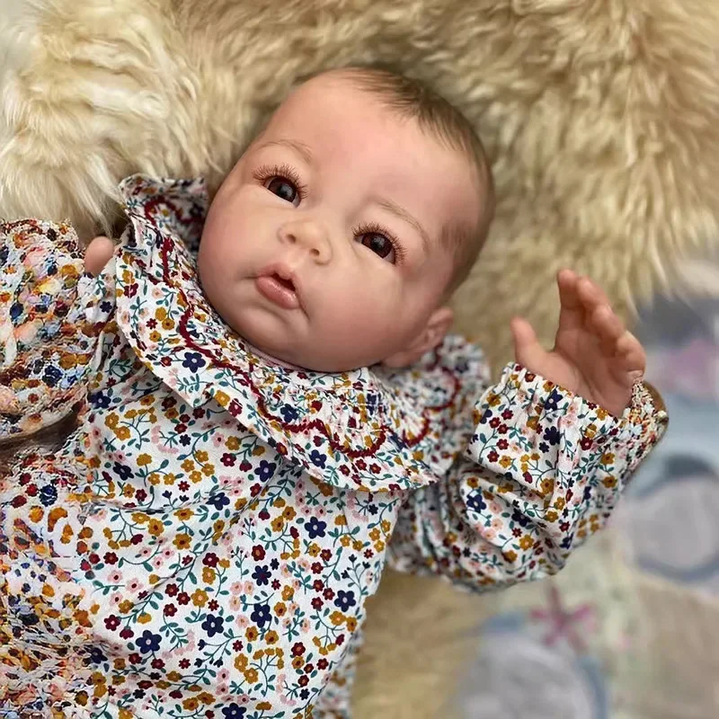 - Vêtements : Habillée dans une tenue délicate à motifs floraux (identique à la photo), compatible avec des vêtements pour bébé (taille 0-3 mois).