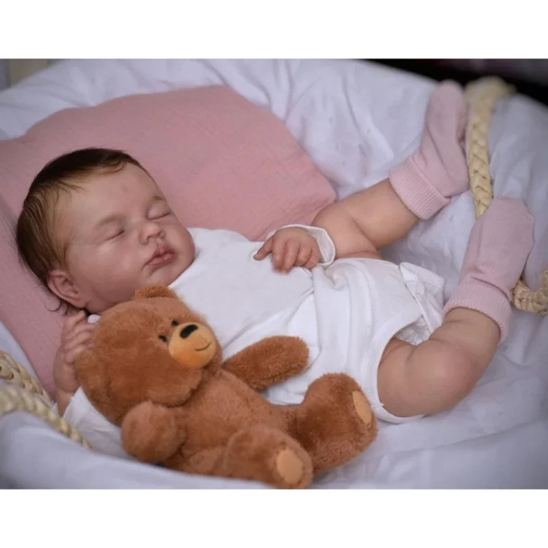 - Yeux : Poupée endormie avec des paupières closes, apportant une sérénité unique.