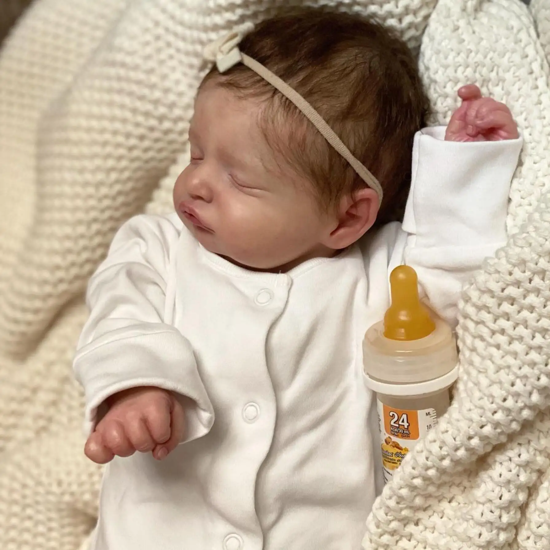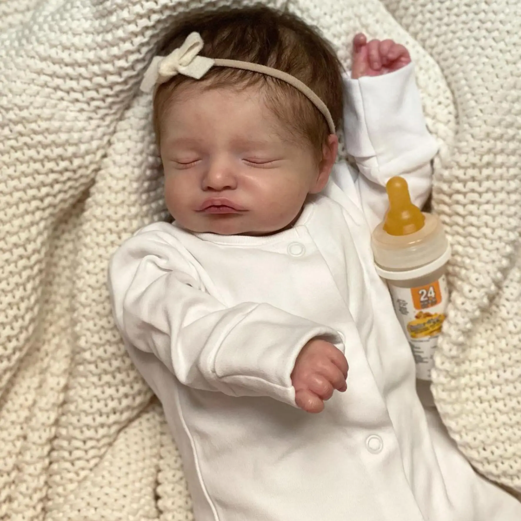 Lisa a des yeux fermés, avec de jolis cils implantés pour un effet encore plus naturel et réaliste. Ses cheveux sont implantés à la main, donnant un rendu très réaliste et facile à coiffer. Chaque détail de sa peau, y compris les veines visibles et les marbrures subtiles, est peint à la main avec des matériaux de haute qualité pour un rendu en 3D impressionnant. Cette poupée reborn est idéale pour les collectionneurs, comme cadeau d’anniversaire ou de Noël pour les enfants, ou pour tout amateur de poupées reborn.