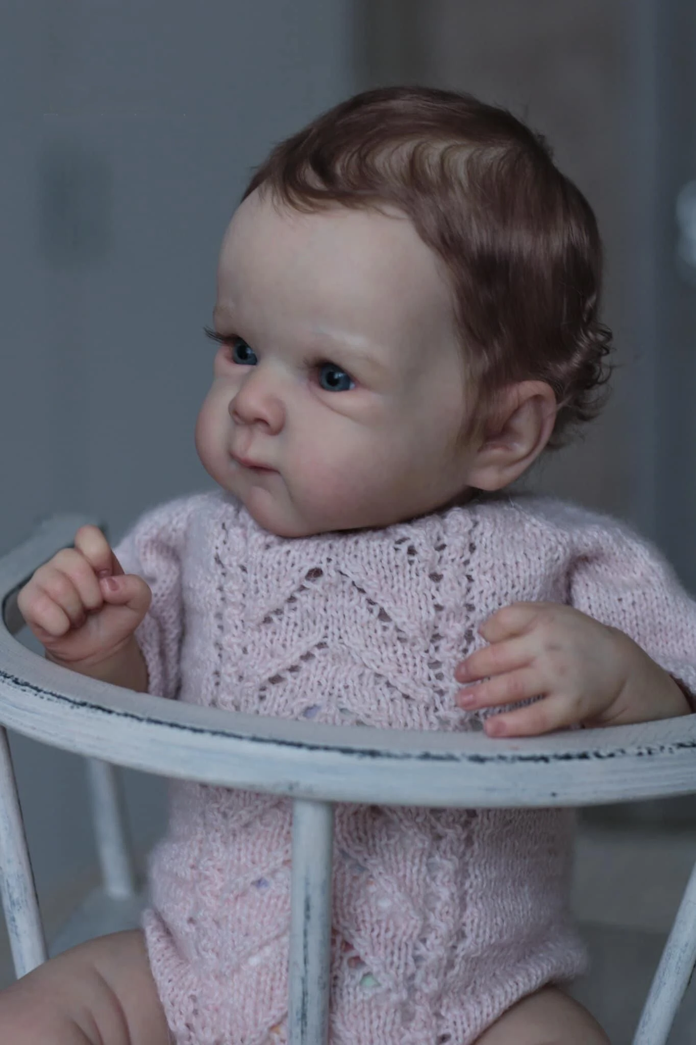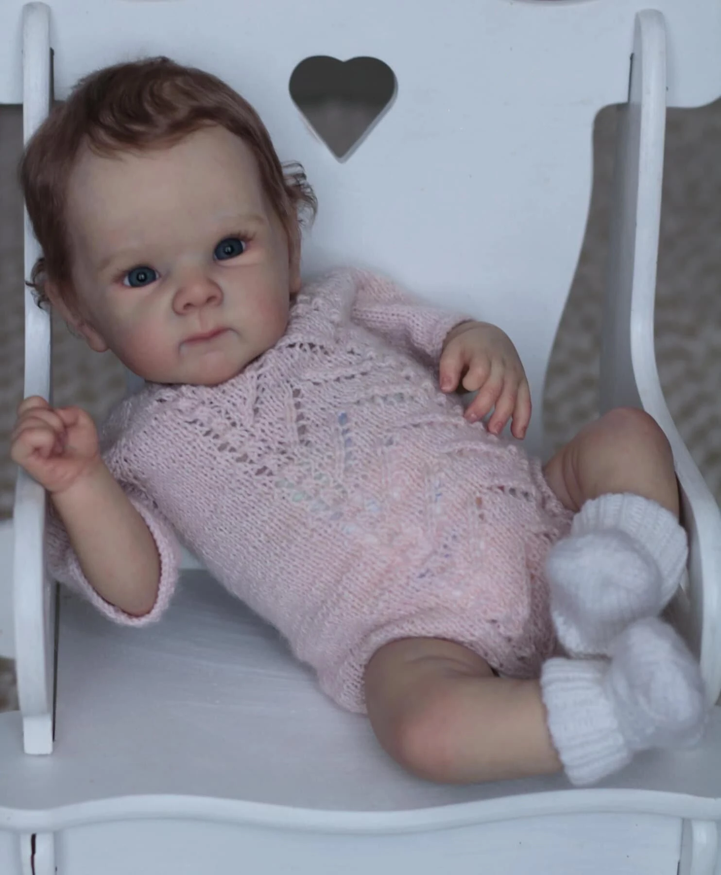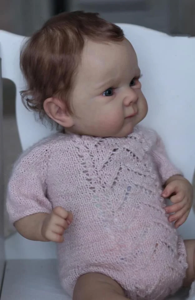 - Vêtements inclus : Une tenue tricotée rose pastel élégante, identique à celle montrée sur la photo. Vous pouvez également habiller Loane avec des vêtements de taille prématuré.