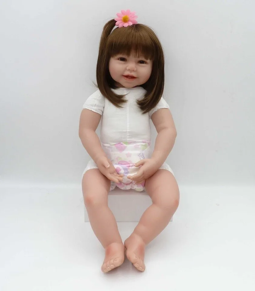 Cette poupée reborn est très réaliste, avec une tête et des membres en vinyle silicone et un corps en tissu bourré de coton PP pour un toucher très doux. Les membres sont articulés, permettant à la poupée de s’asseoir ou de s’allonger facilement. Les yeux en acrylique de haute qualité sont d’une grande beauté et ne clignotent pas.
