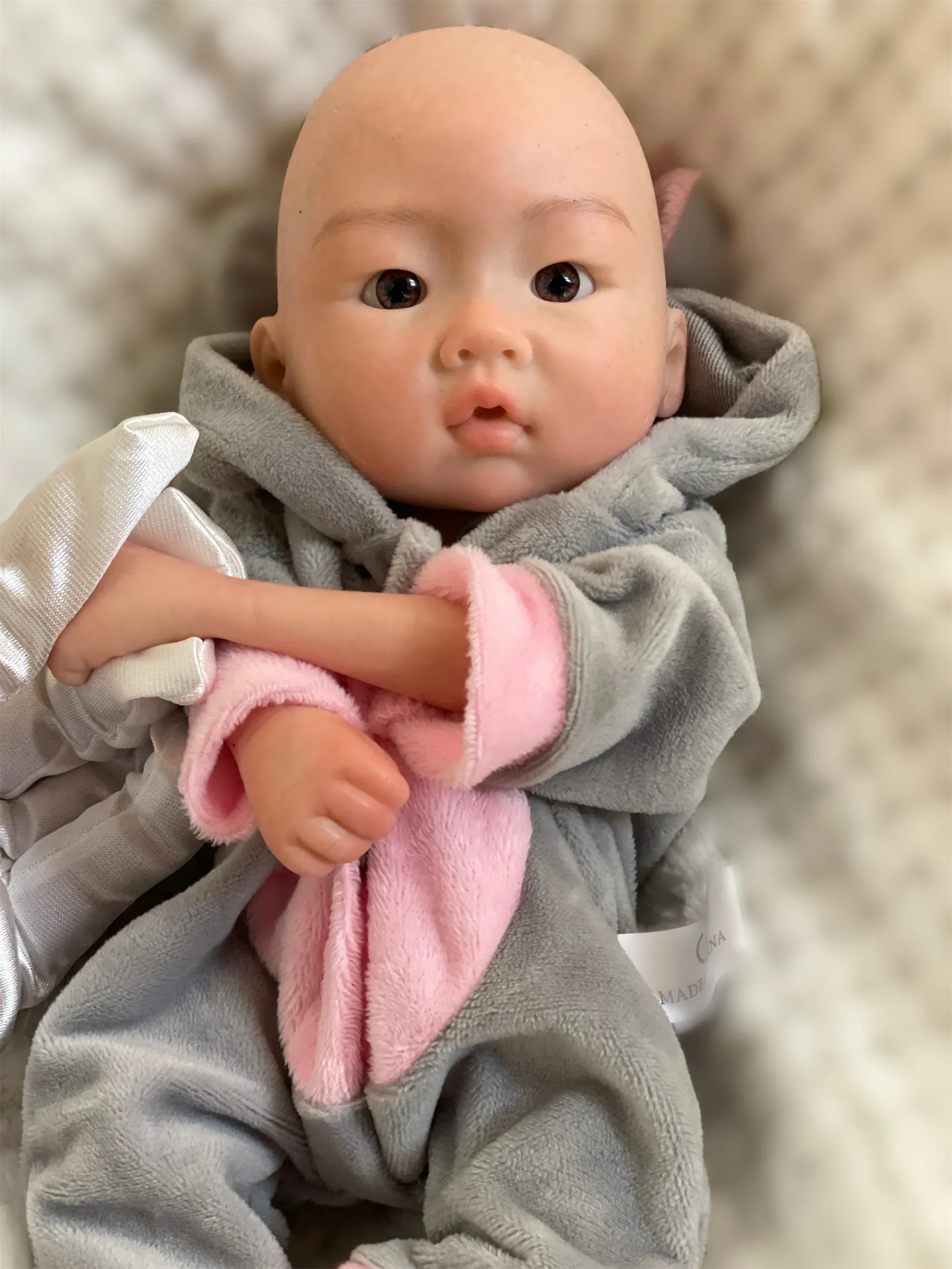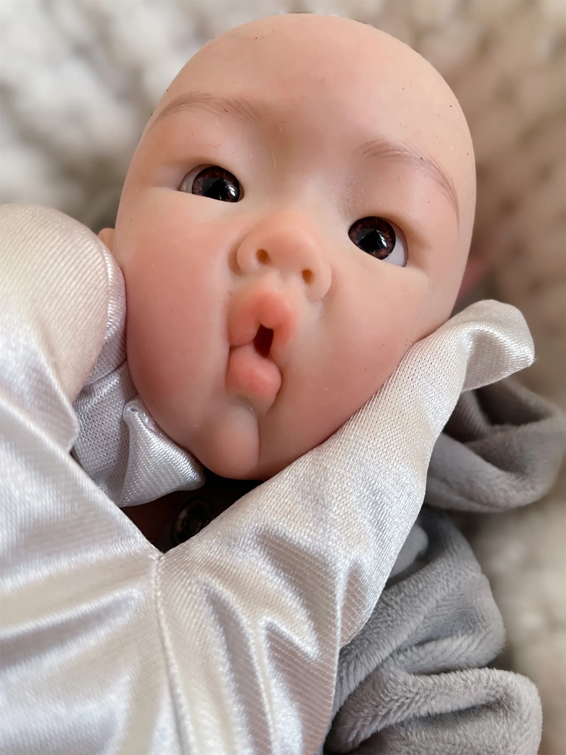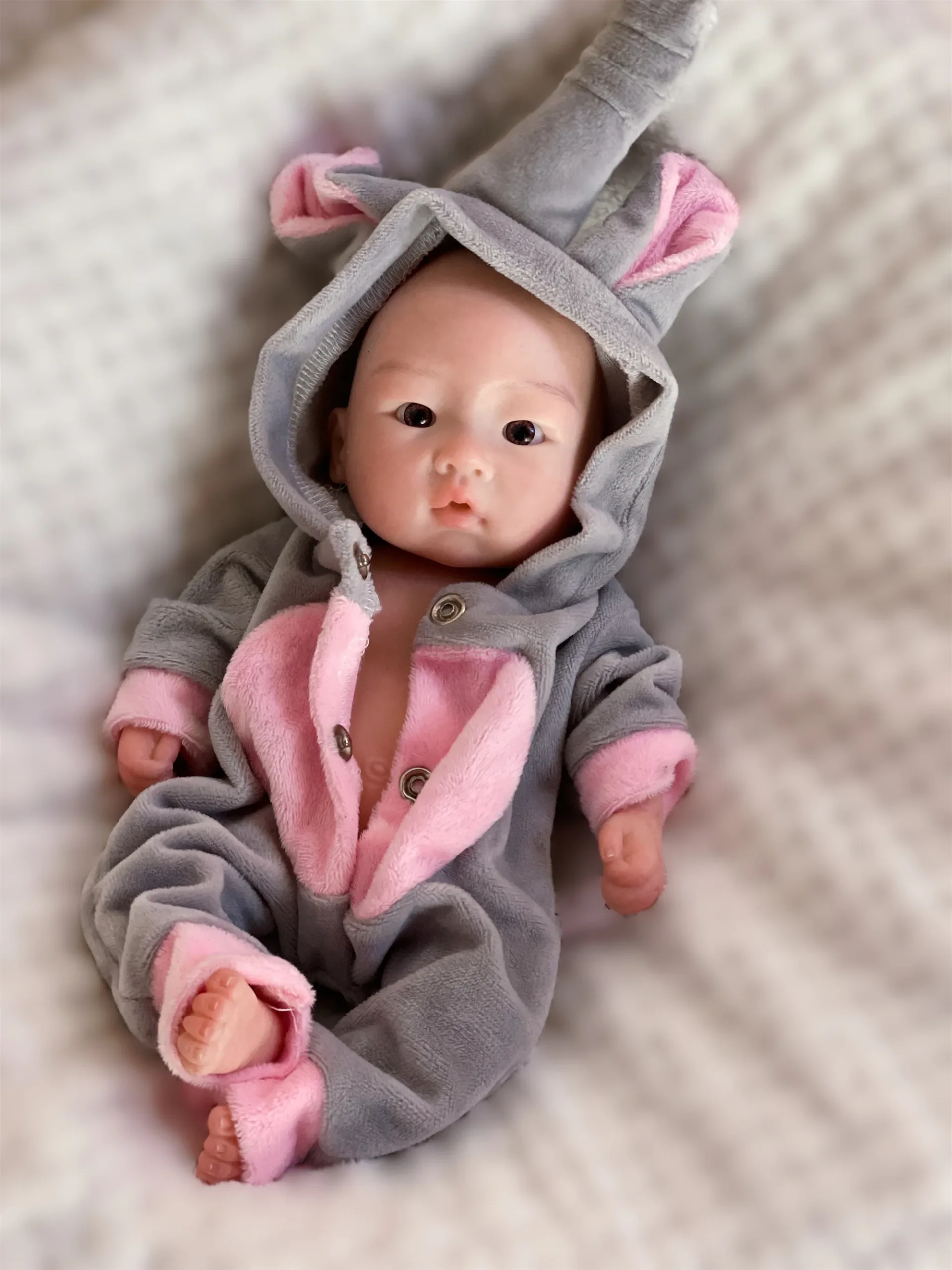 Découvrez Dimitri, un bébé reborn garçon en silicone solide, petit par la taille mais grand par le réalisme. Avec ses 25 cm, son corps complet en silicone, ses traits peints à la main, et sa peau douce et souple, Dimitri est parfait pour les collectionneurs de mini reborns, les enfants ou les amateurs de poupées réalistes à petit format.