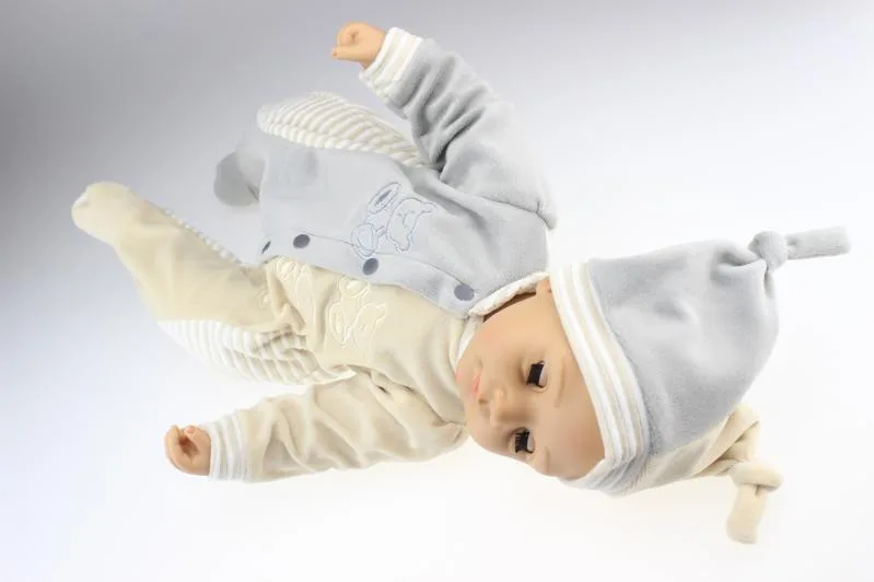Le bébé reborn garçon Hugo est vêtu d’un adorable body bicolore, mais n’hésitez pas à ajouter votre touche personnelle en utilisant votre collection de vêtements reborn.
