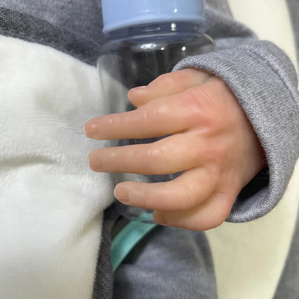 Luc est entièrement posable : ses membres rotatifs permettent de le placer dans différentes positions pour encore plus de réalisme. Vous pouvez également lui mettre des vêtements taille nouveau-né, ce qui offre une personnalisation infinie. Son corps en vinyle permet des bains, ajoutant une dimension ludique à l’expérience.