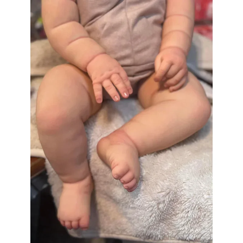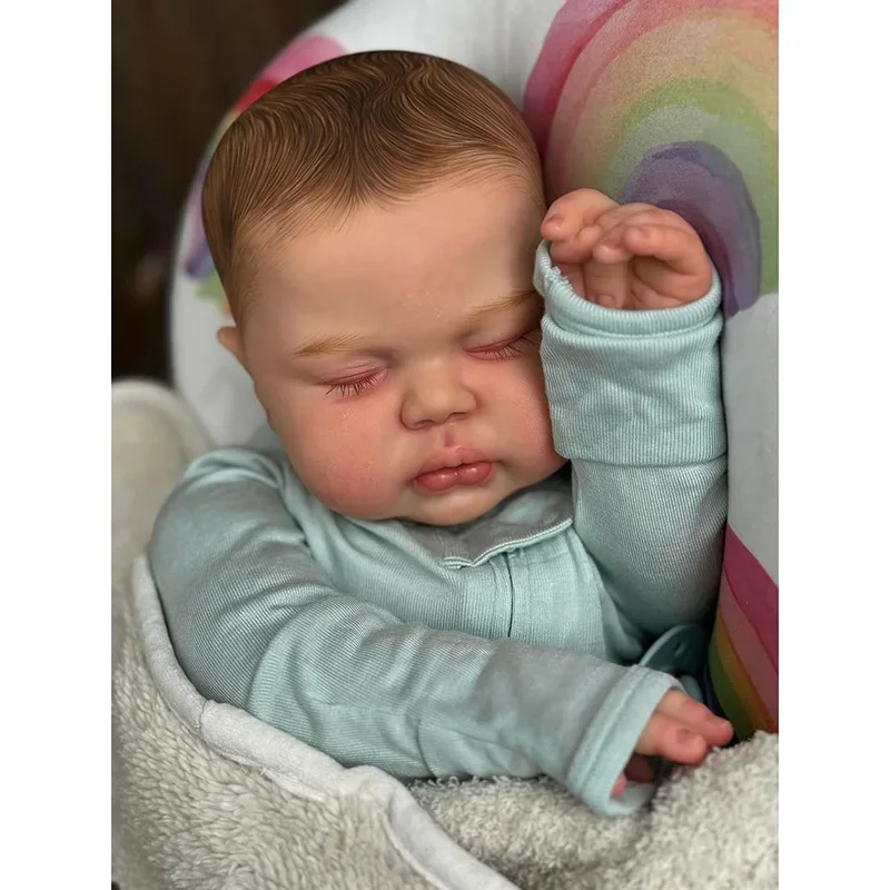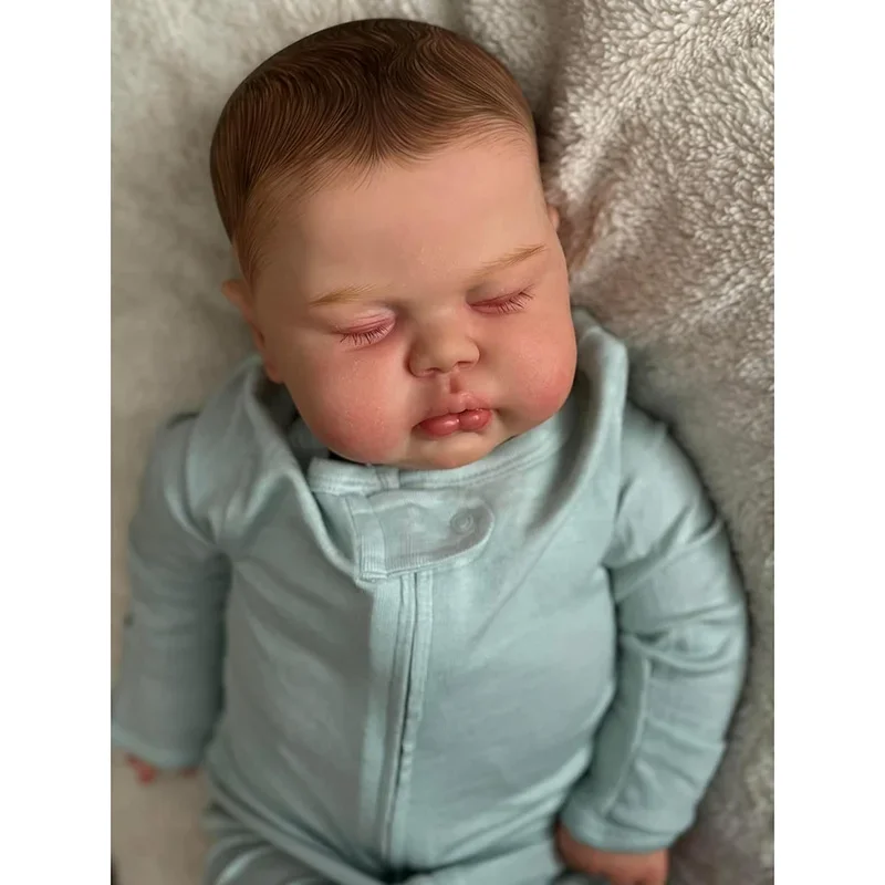 Découvrez Noam, un bébé reborn garçon de 60 cm, entièrement fait à la main pour un réalisme saisissant. Avec sa peau peinte en plusieurs couches, ses cheveux peints à la main et ses yeux fermés, Noam est le compagnon idéal pour les collectionneurs et les enfants en quête d’une poupée réaliste et câline.