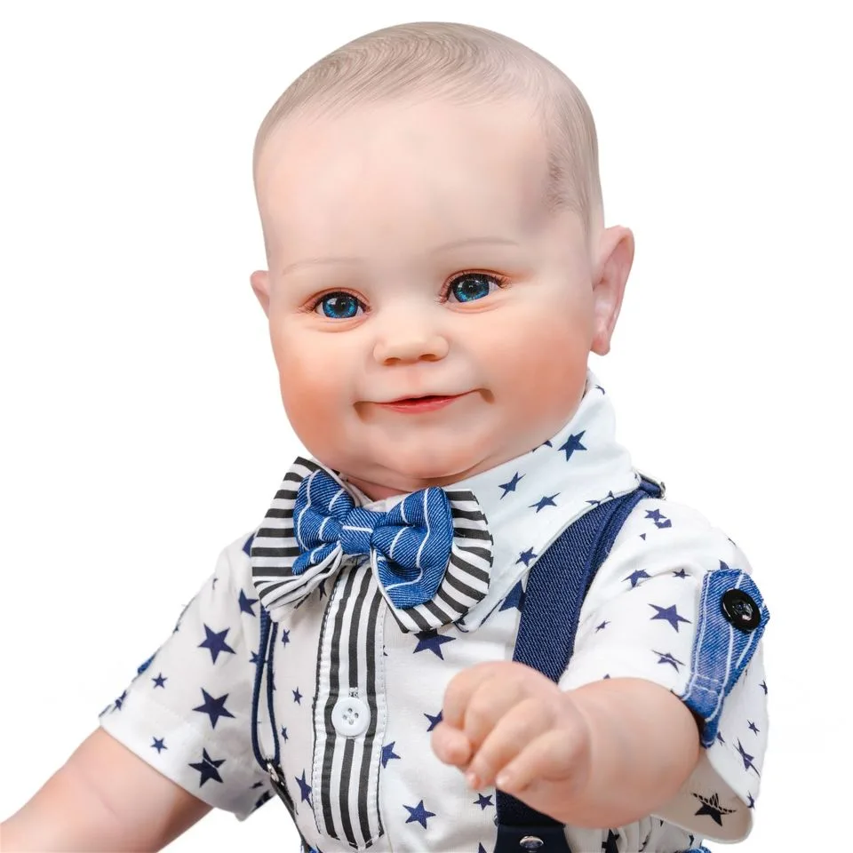 Le bébé reborn garçon Robin est un compagnon de jeu plein de joie et de douceur. Son visage délicat et ses grands yeux pétillants vous séduiront instantanément, faisant fondre votre cœur à chaque regard.