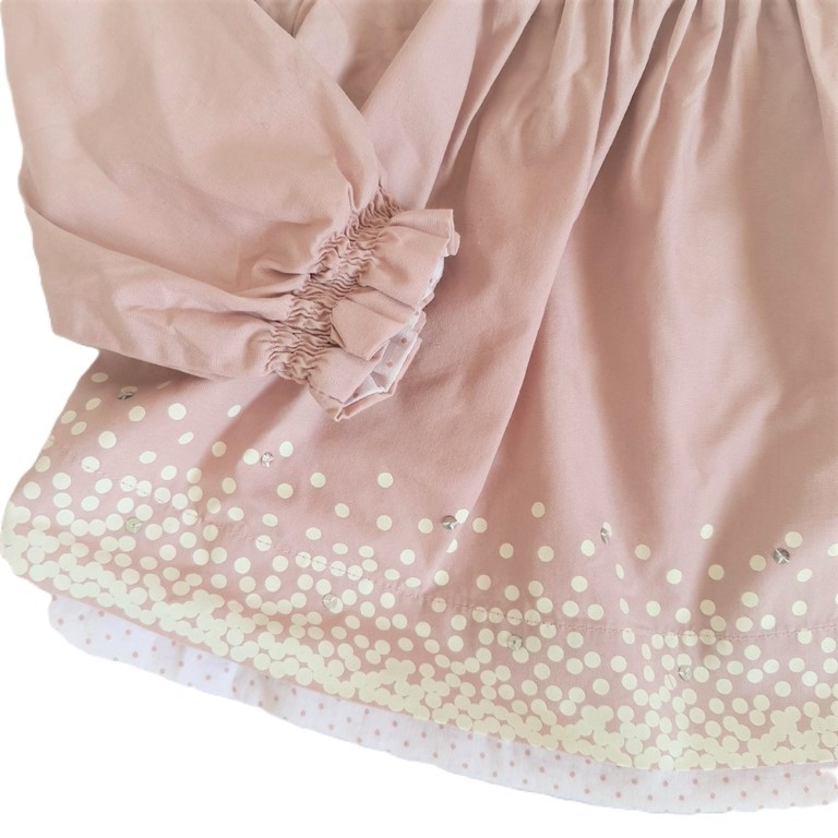 Blouse bébé fille 12 Mois OBAIBI Blouse manches longues rose et pois blancs avec des petits strass Entièrement doublée