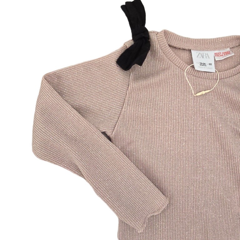 Body bébé fille 18/24 Mois ZARA Manches longues et col vieux rose à paillettes argentées