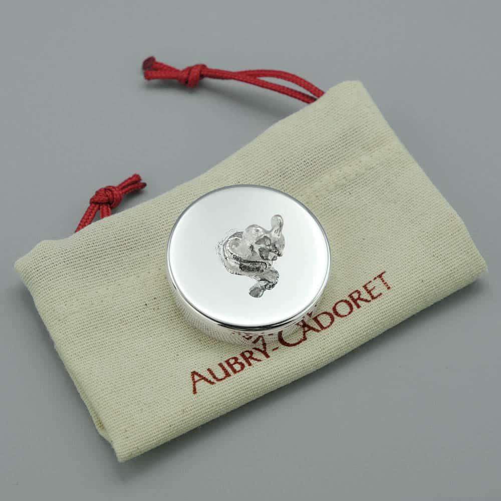 De fabrication française, cette boîte à dents de lait petite souris assise est marquée du poinçon de maître de nos orfèvres.