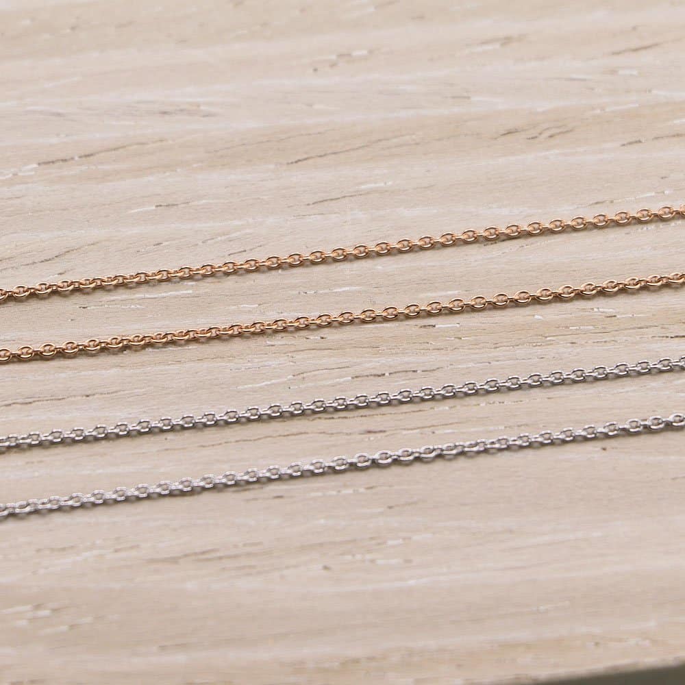 Cette magnifique chaine en or blanc 18 carats ou plus précisément en or gris 18 carats rhodié est un ras du cou (40 cm). Sa maille forçat ronde est constituée d’une succession de maillons ronds.