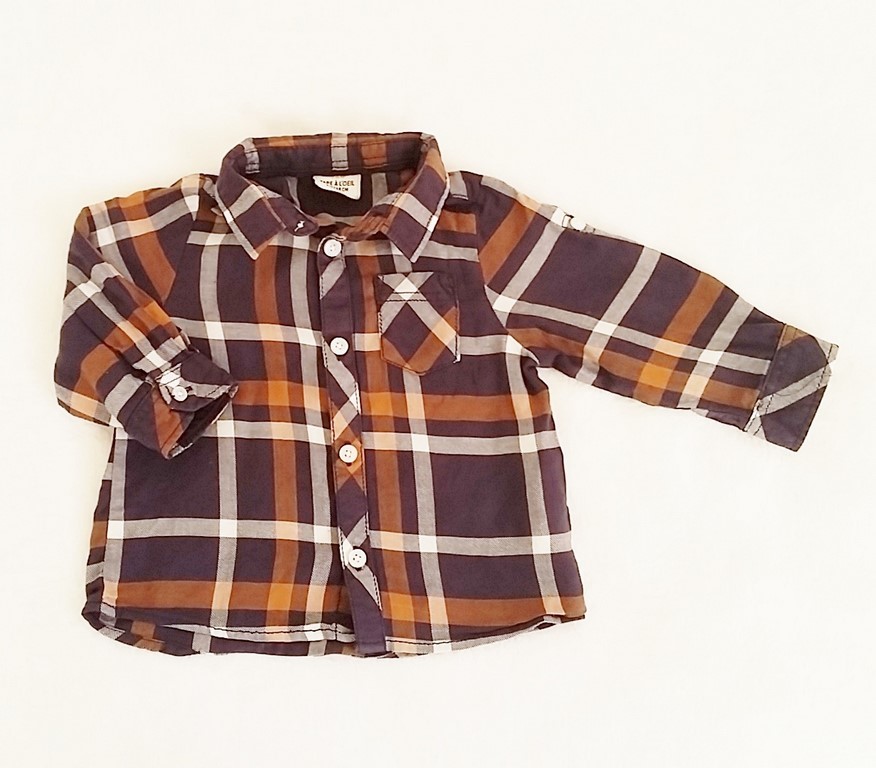 Chemise bébé garçon 6 Mois TAPE A L’OEIL TAO Chemise manches longues à carreaux tons marron blanc et bleu marine Fermeture boutons