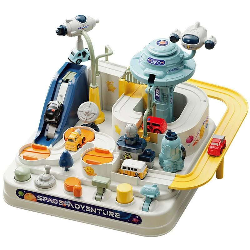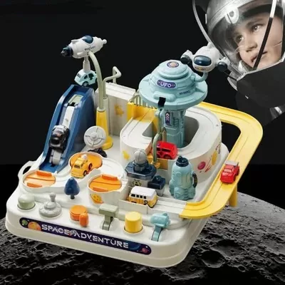 Votre enfant va pouvoir se plonger dans le monde fabuleux de l’exploration spatiale avec ce circuit auto Montessori représentant une base spatiale.