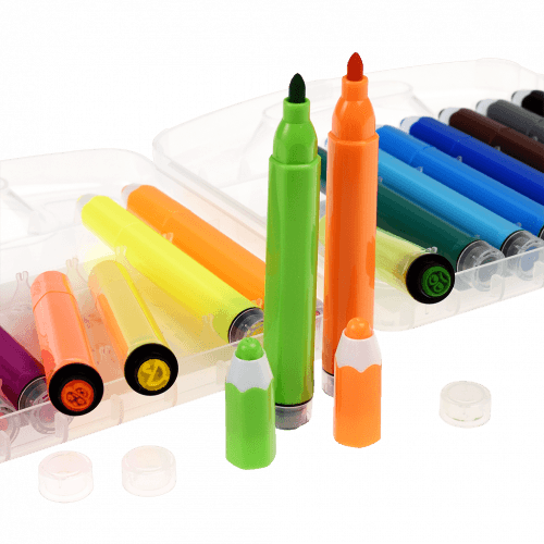 - 18 feutres et un étui de transport en plastique rigide
