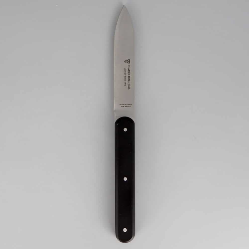 Ce couteau appelé 6.16 est fabriqué en France par l’atelier Claude Dozorme dans le grand respect de la tradition coutelière. Sa lame est très épaisse, 22 mm qui rend son affutage très aisé. Il se décline en 3 versions, ivoire, noir et en bois d’olivier.