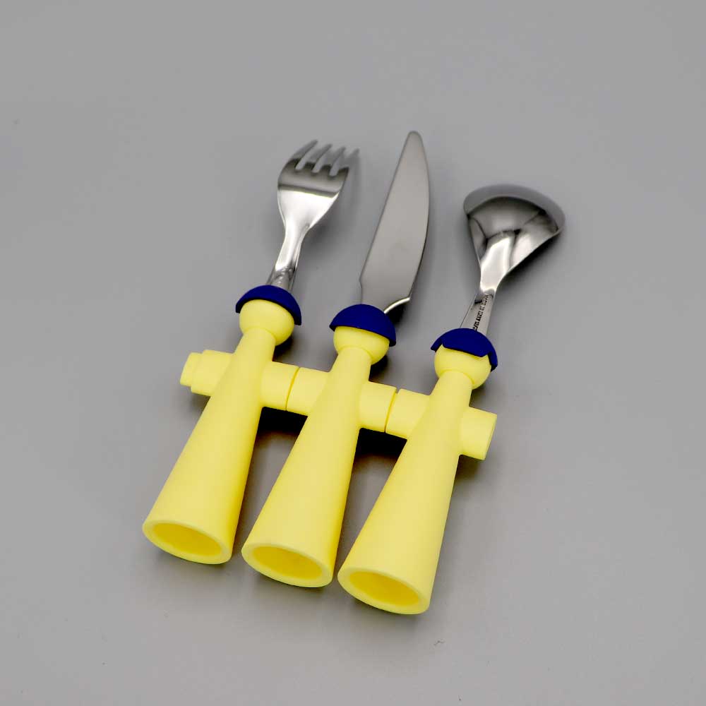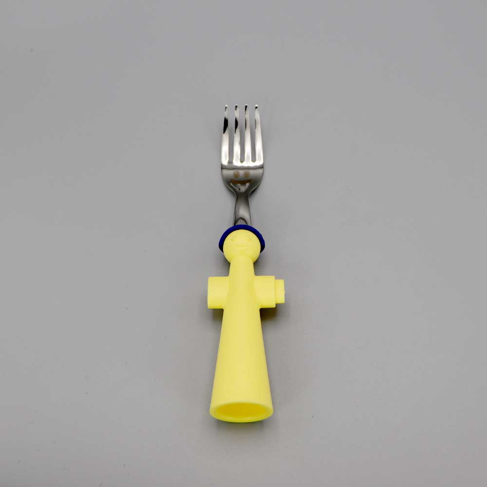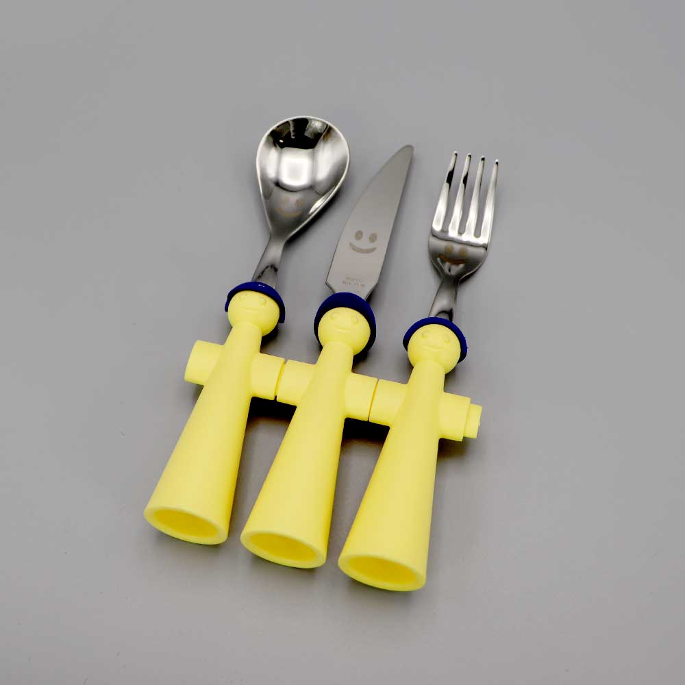 Couvert enfant 3 pièces bonhommes Jaunes en inox et résine.