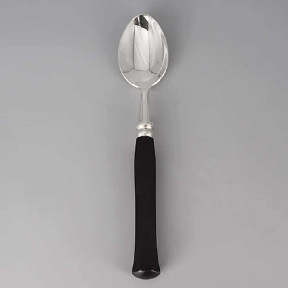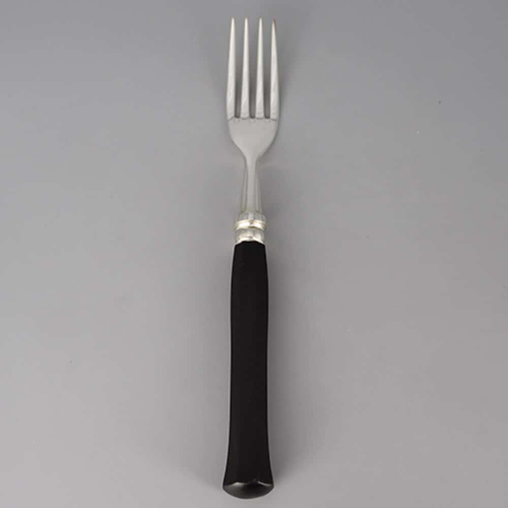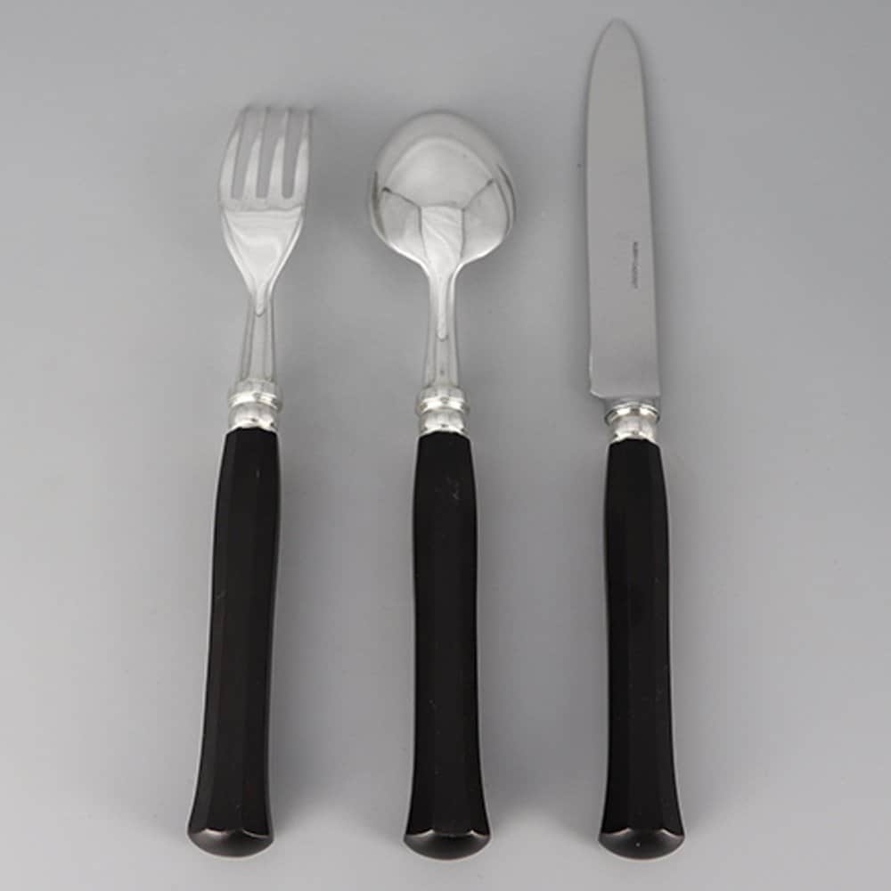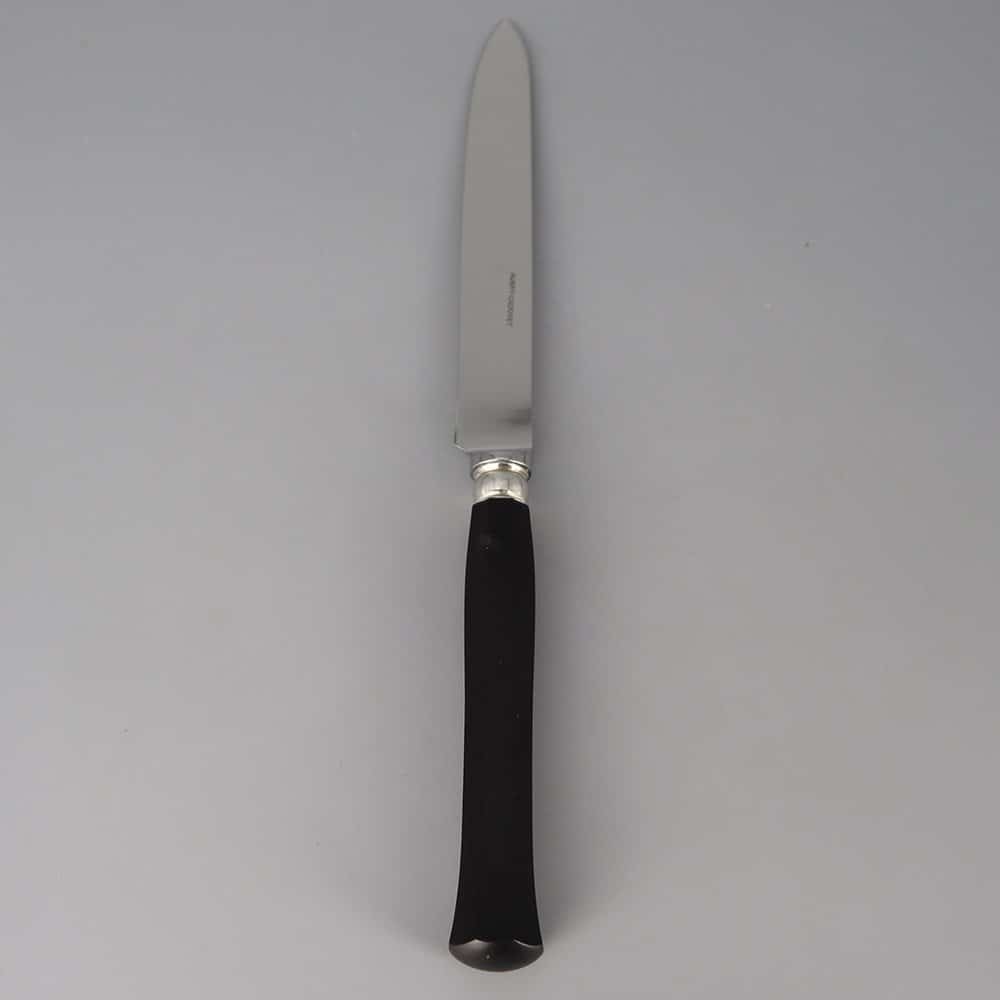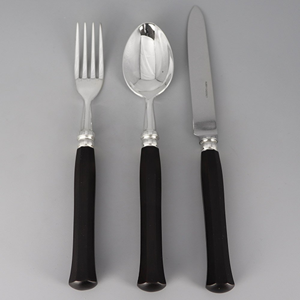 Ligne de couverts en inox et métal argenté (virole et culot), une collection des arts de la table de tradition française, manche ébène. Egalement disponible en palissandre ou buis. Lame forgée.
