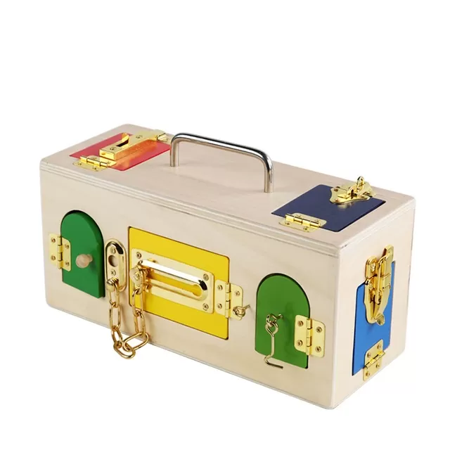 Ce cube est équipé d’une variété de fermetures différentes, qui ressemblent à celles présentes sur les portes, les fenêtres et d’autres objets courants comme des loquets ou des cadenas. Votre enfant améliore sa coordination œil-main et acquiert des compétences pratiques pour s’habiller et se préparer seul en manipulant ces fermetures.