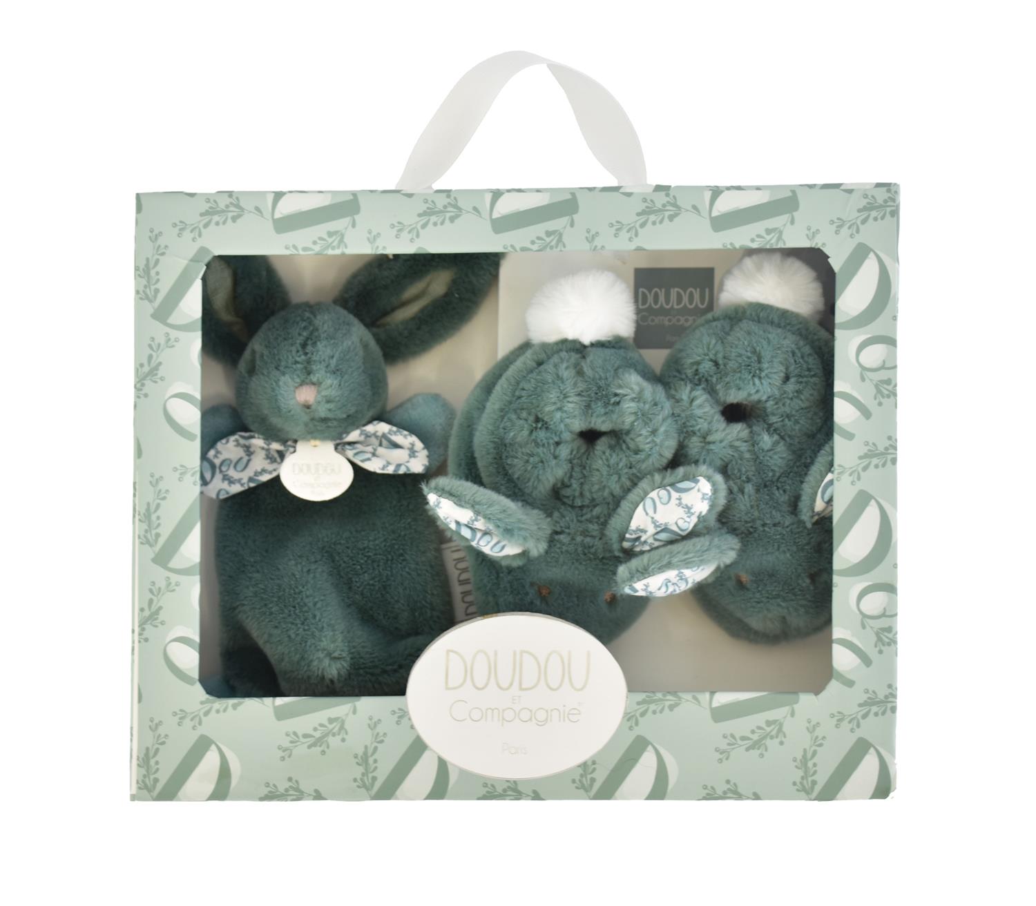 DC – Coffret Doudou Lapin Doux & Chaussons 0/6 Mois Sauge