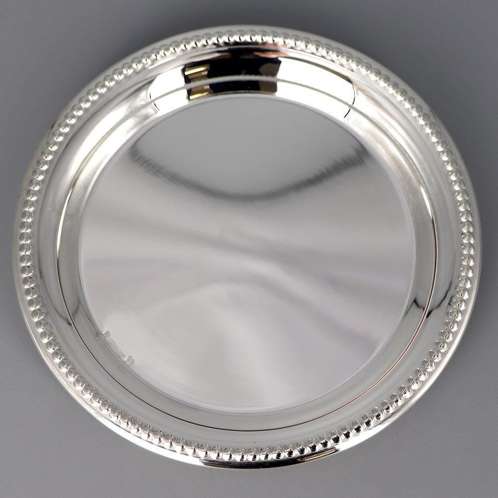 Dessous de carafe en métal argenté PERLES. Ø : 15 cm. Creux. Dessous de carafe personnalisé par une gravure. Expédié en coffret cadeau. Idéal pour un cadeau de mariage.