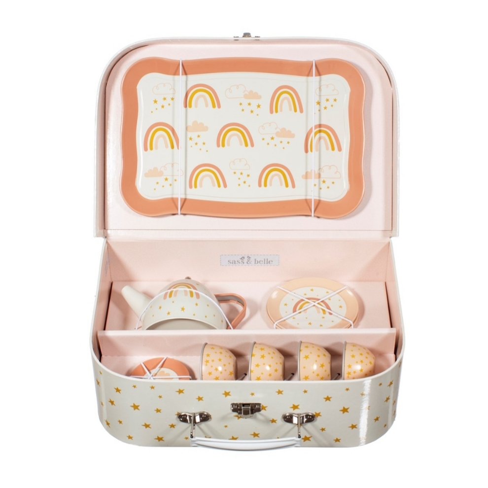 Tea Time ! Voici une adorable dînette en métal délicieusement rétro présentée dans sa jolie valisette étoilée !