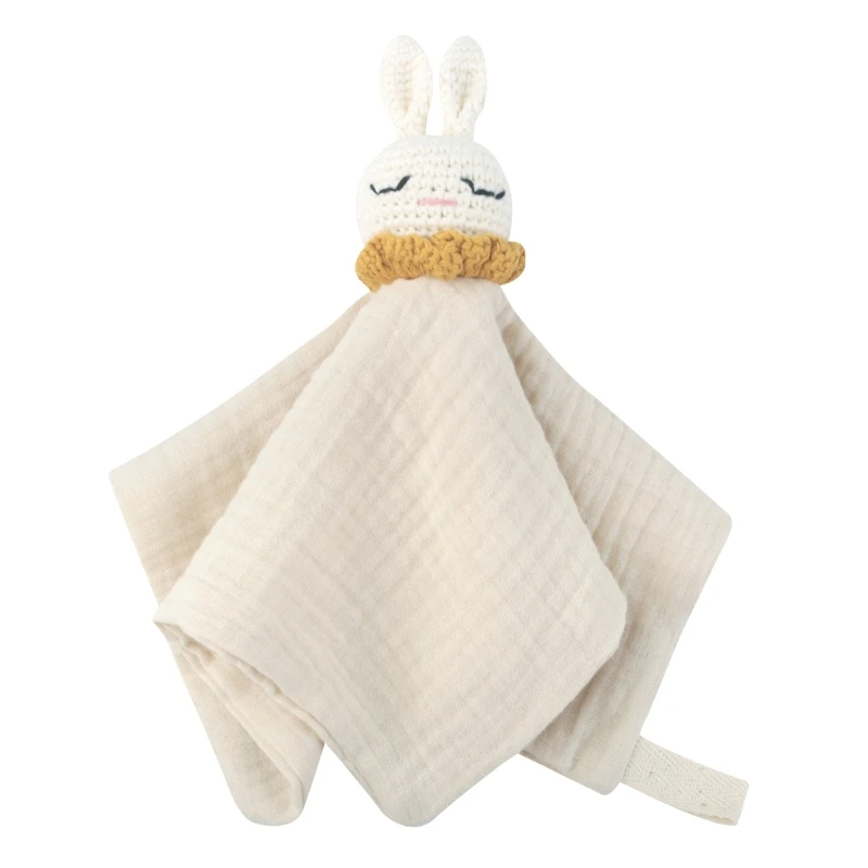 - Design adorable : Une tête de lapin crochetée à la main, combinée à une couverture douce couleur lin, pour un look élégant et enfantin.
