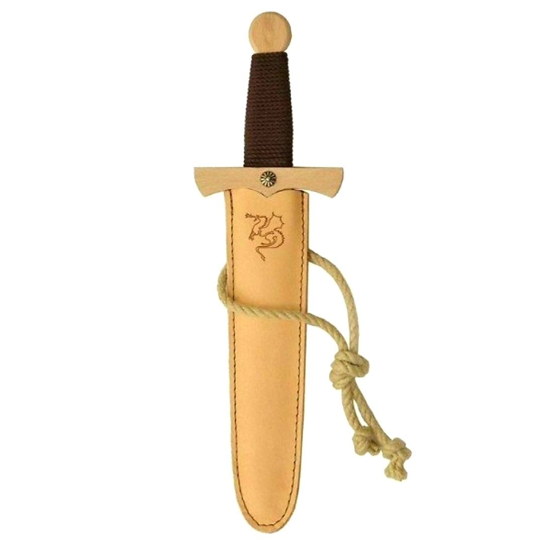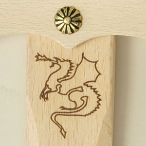 Cette magnifique épée en bois, gravée d’un dragon, séduira n’importe quel chevalier, pourvu qu’il soit courageux et aguerri ! Le fourreau en cuir, orné du même symbole, permet de ranger l’arme et de l’attacher autour de la taille grâce à sa ceinture en corde !