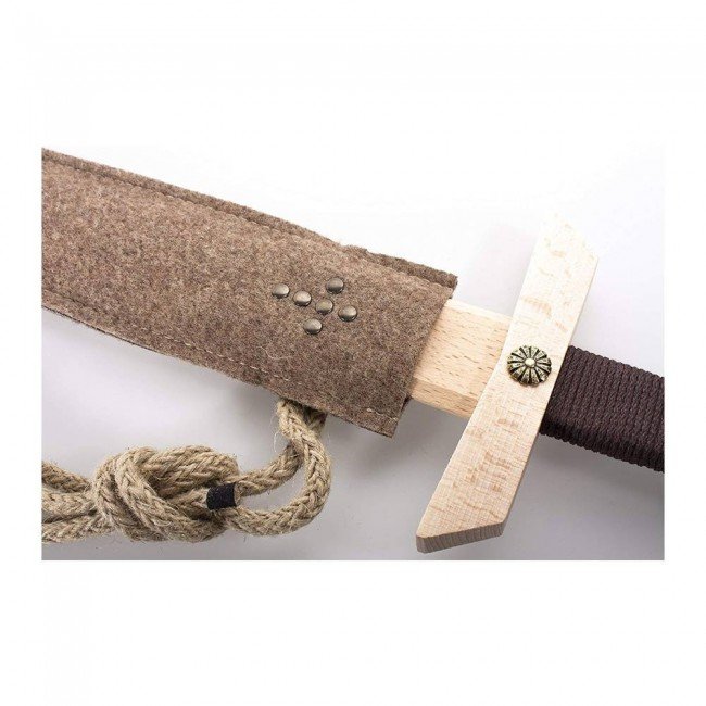 Cette magnifique épée en bois séduira n’importe quel chevalier, pourvu qu’il soit courageux et aguerri ! Son fourreau, orné du symbole des Templiers, permet de ranger l’arme et de l’attacher autour de la taille grâce à sa ceinture en corde !
