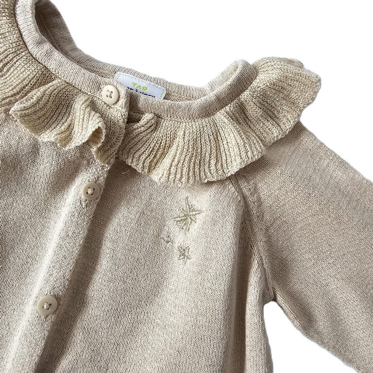 Gilet bébé fille 18 MOIS TAPE A L’OEIL TAO Manches longues mailles dorées avec col Fermeture boutons