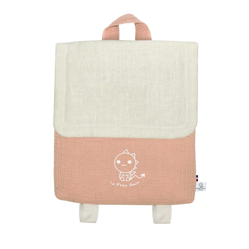 - Sac à dos : double gaze 100% coton + 100% lin + garnissage 100% polyester