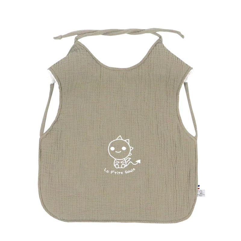 - Bavoir pour les grands : double gaze 100% coton + éponge 80% coton et 20% polyester + tissu imperméable 100% polyester