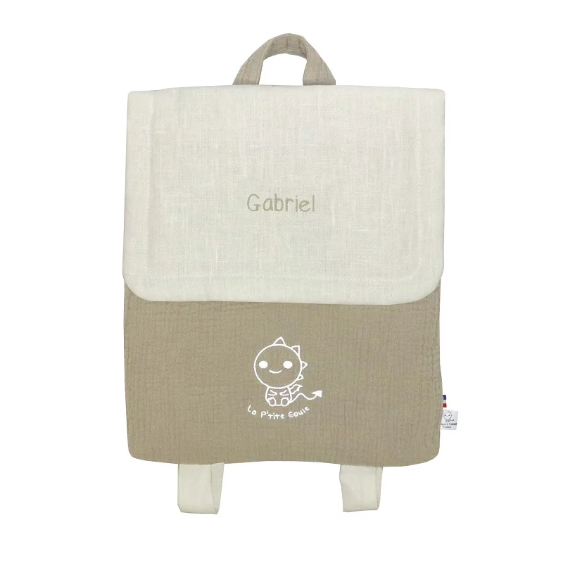 - Sac à dos : double gaze 100% coton + 100% lin + garnissage 100% polyester