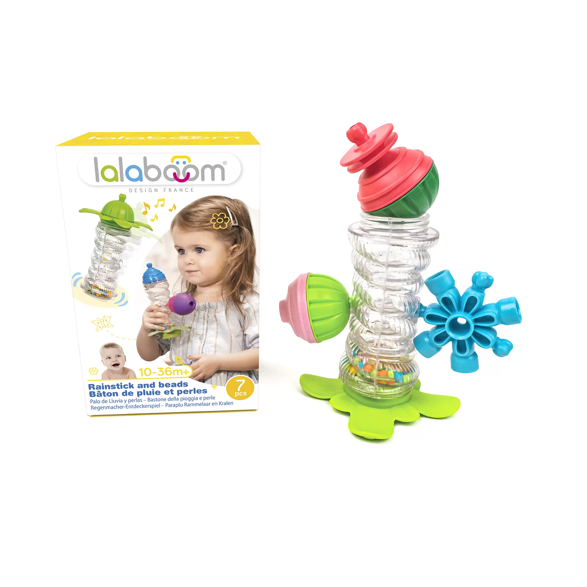 Le bâton de pluie est un instrument d’éveil à percussion très agréable. Il fascine les enfants, développe leur oreille musical et leur apporte apaisement et relaxation! Grace aux perles Lalaboom l’instrument devient aussi un jouet ludique et évolutif. Contient 1 bâton de pluie 2 grosses perles (dia. 5 cm) et 2 accessoires. Des perles et formes harmonieuses dont chaque fonction correspond à une étape du développement de l’enfant de 10 mois à 5 ans : Clipser, visser, combiner, construire.,