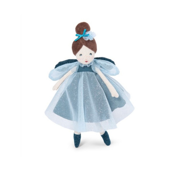Nos petites princesses vont être ravies de découvrir cette petite fée de couleur bleue, une ravissante poupée parée de jolies ailes, coiffée d’un ruban de satin et vêtue d’une robe raffinée faite de coton et de tulle pailletée ! Tout ce qu’elles aiment ! Tout ce qu’on aime ! Bienvenue au pays des rêves !!!
