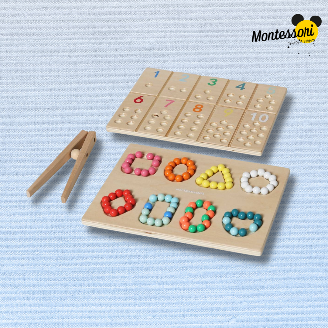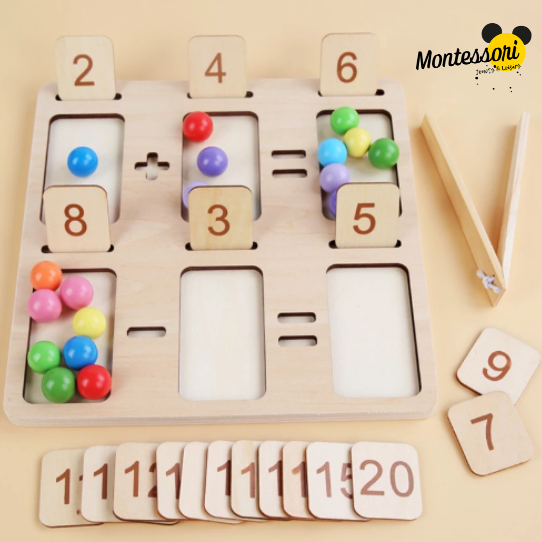Une collection originale de matériaux de jeu éducatif Montessori Mathématique évolue progressivement du concret à l’abstrait. Contrairement à la plupart des autres programmes qui introduisent les mathématiques de manière plus abstraite, les mathématiques Montessori commencent par du matériel concret et progressent lentement vers l’abstraction. Par exemple, les élèves apprennent les nombres décimaux. Cela comprend 1 perle représentant des unités, 10 barres représentant 10, 100 carrés représentant des pourcentages et 1000 cubes représentant 1000.