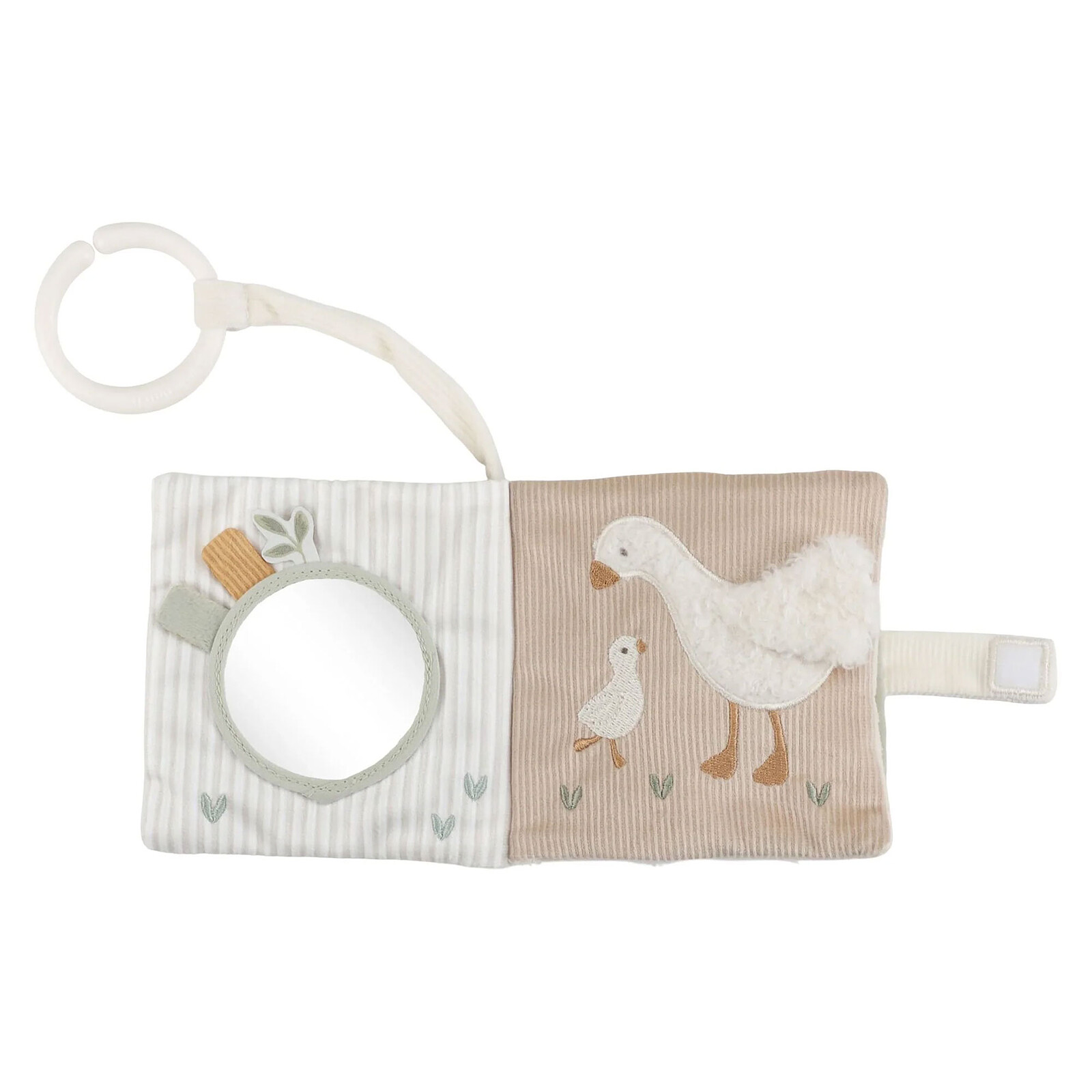 Ce petit livre d’activités tactiles en textile invite bébé à de passionnantes explorations. En tournant les pages, il découvre une variété de textures, un miroir, un hochet, des étiquettes à manipuler ou des éléments cachés. Chaque page réserve une nouvelle surprise pour éveiller les sens et stimuler la motricité. Grâce à ses jolies illustrations, ses matières douces et son toucher agréable, il promet de jolis moments de découvertes et d’éveil !