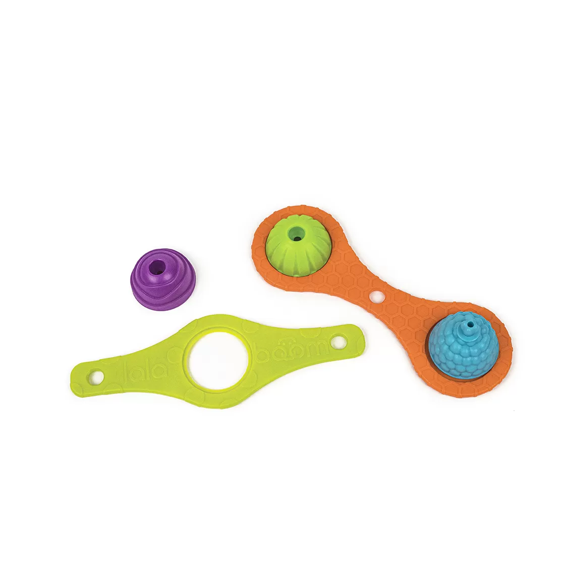 2 accessoires utile pour donner une nouvelle dimension à votre collection Lalaboom. Facile a tordre plier et pouvant être mordiller. Contient 2 liens souples et 4 grosses perles éducatives. Des perles et formes harmonieuses dont chaque fonction correspond à une étape du développement de l’enfant de 10 mois à 5 ans : Clipser, visser, combiner, construire.