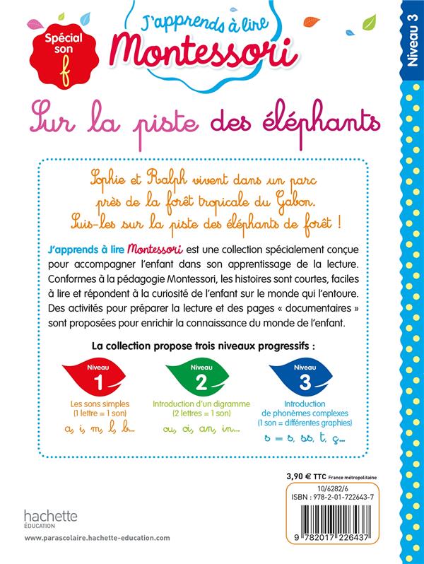 Le Livre Montessori – J’apprends à lire : sur la piste des éléphants – CP est spécialement conçu pour les enfants âgés de 6 ans et plus, offrant un contenu adapté à leur niveau de lecture et encourageant l’autonomie dans le processus d’apprentissage.