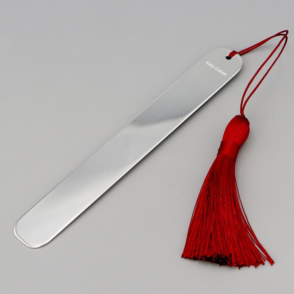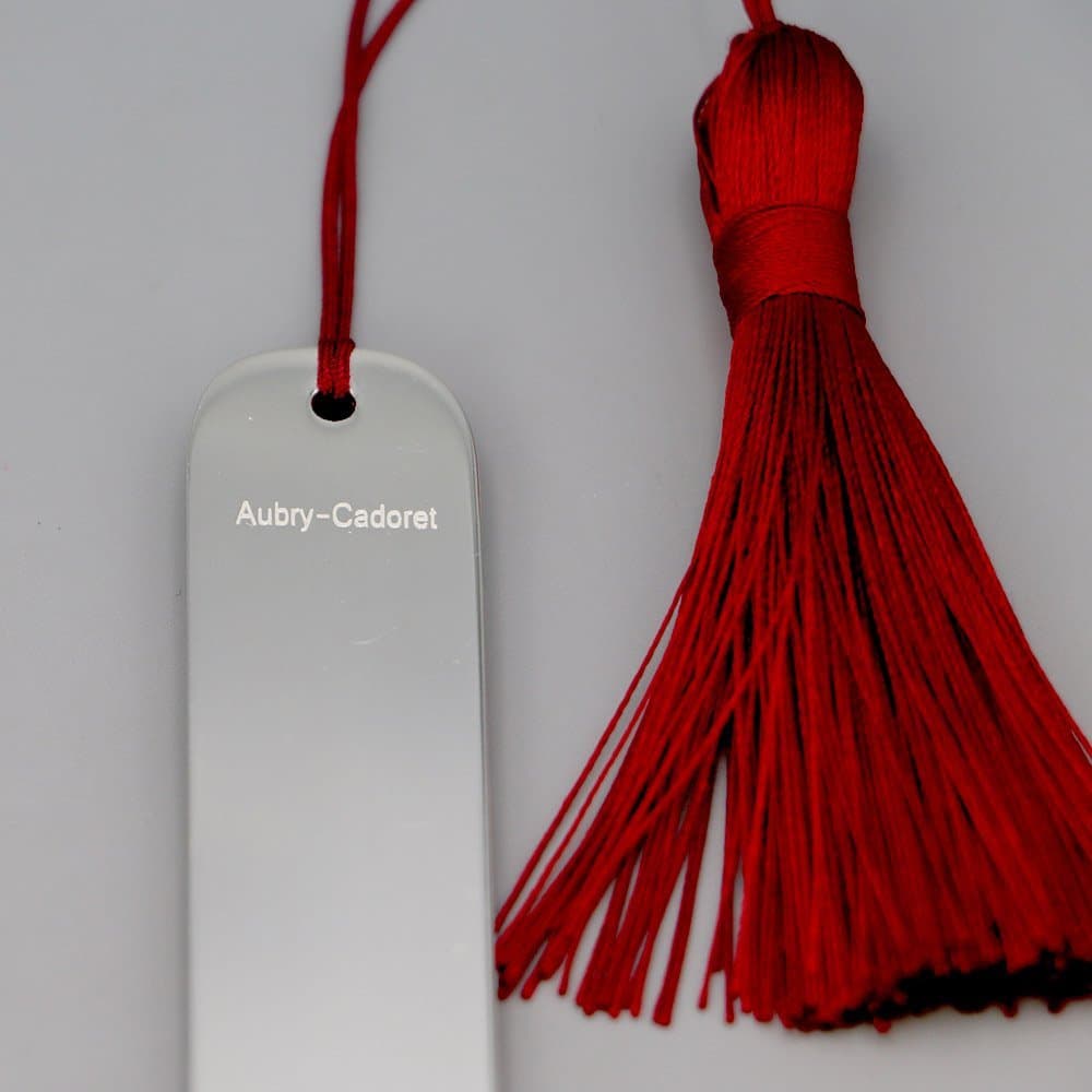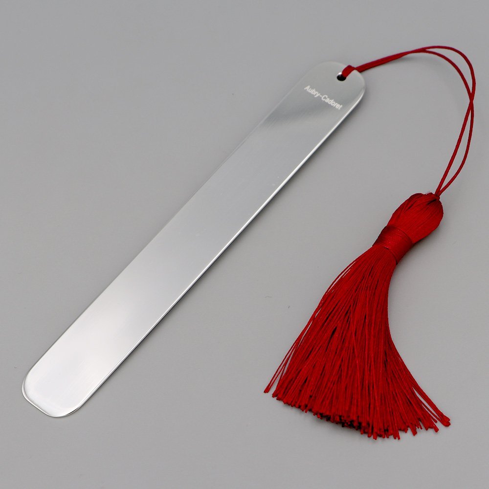 Vous cherchez un cadeau utile et original ? Offrez ce marque-page avec son pompon rouge (la couleur peut changer en fonction des disponibilités) en passementerie ! Réalisé en métal argenté brillant, nous le personnalisons au texte de votre choix !