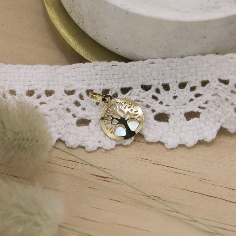 Médaille Arbre de vie en Or jaune 9 carats et nacre