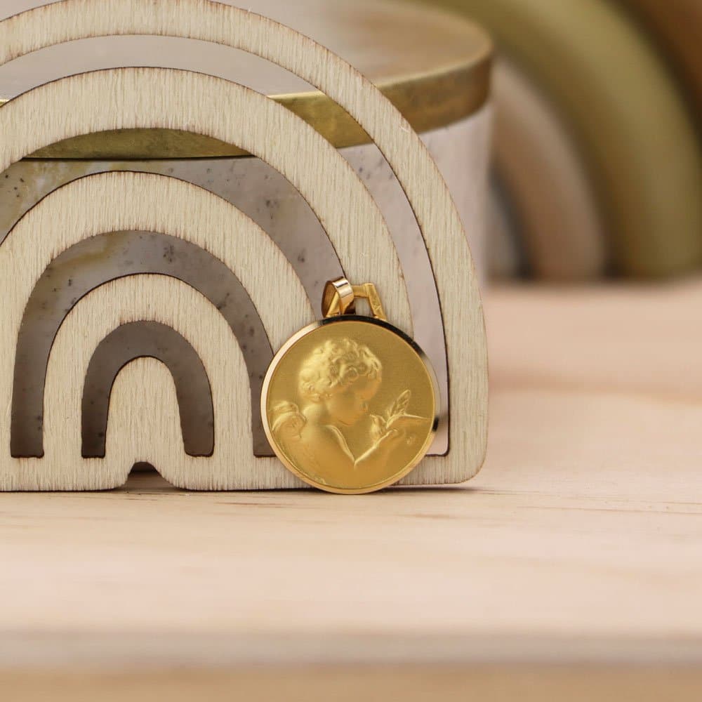 Médaille de baptême Ange à la colombe en Or jaune 18 carats