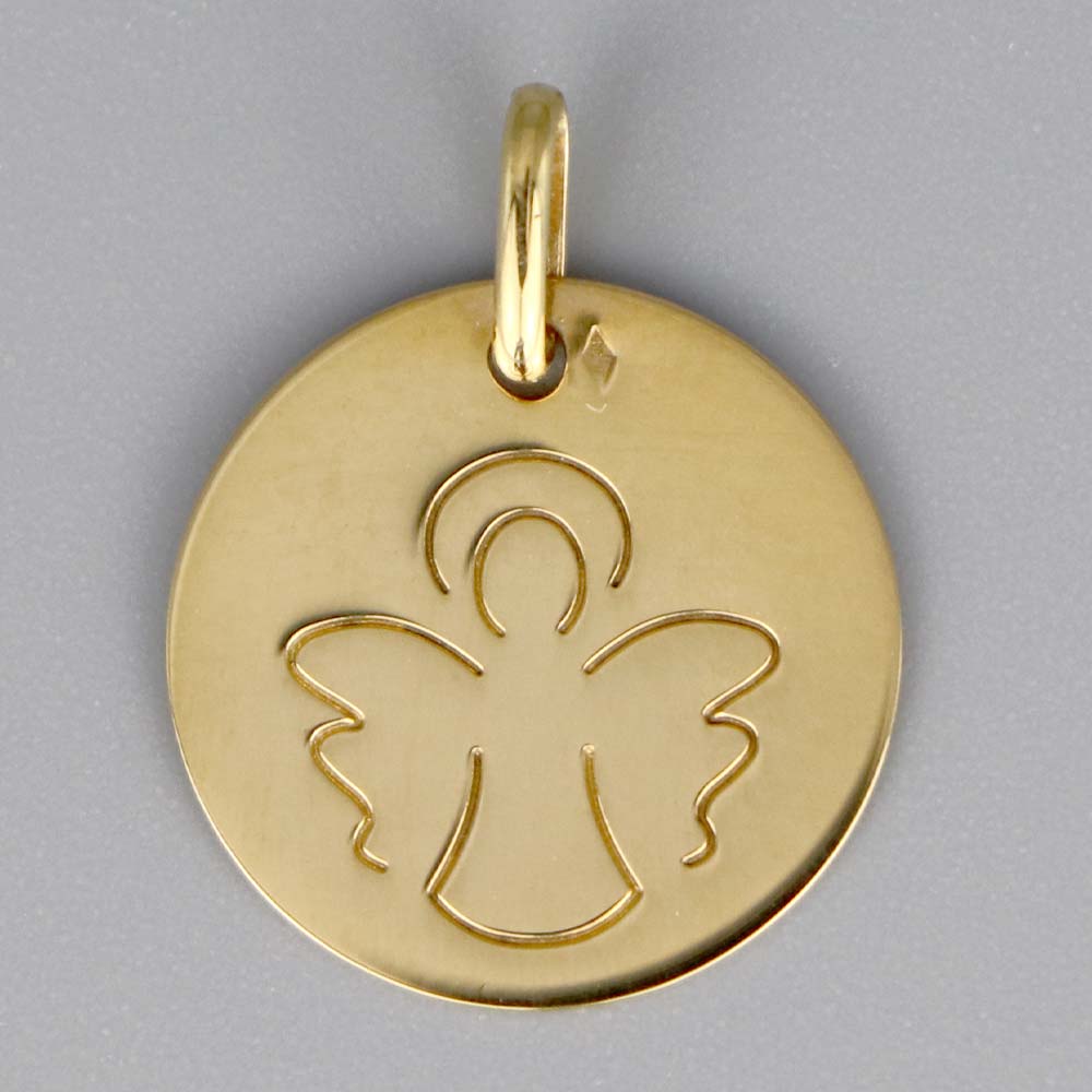 Médaille de baptême Ange au trait. Or jaune 18 carats (0.95 g). Ø 16 mm.