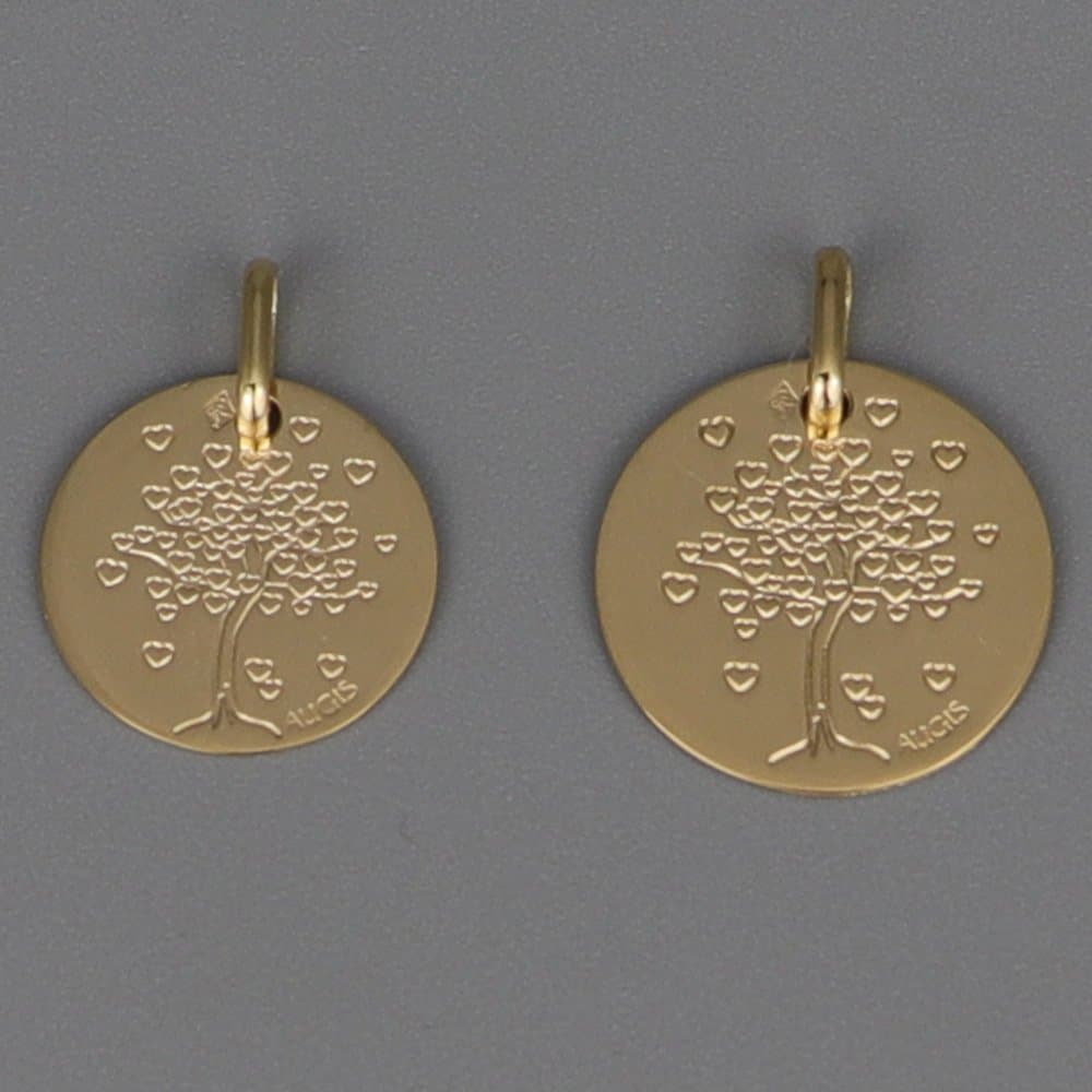 Médaille de baptême Arbre aux cœurs en Or jaune 18 carats 14mm