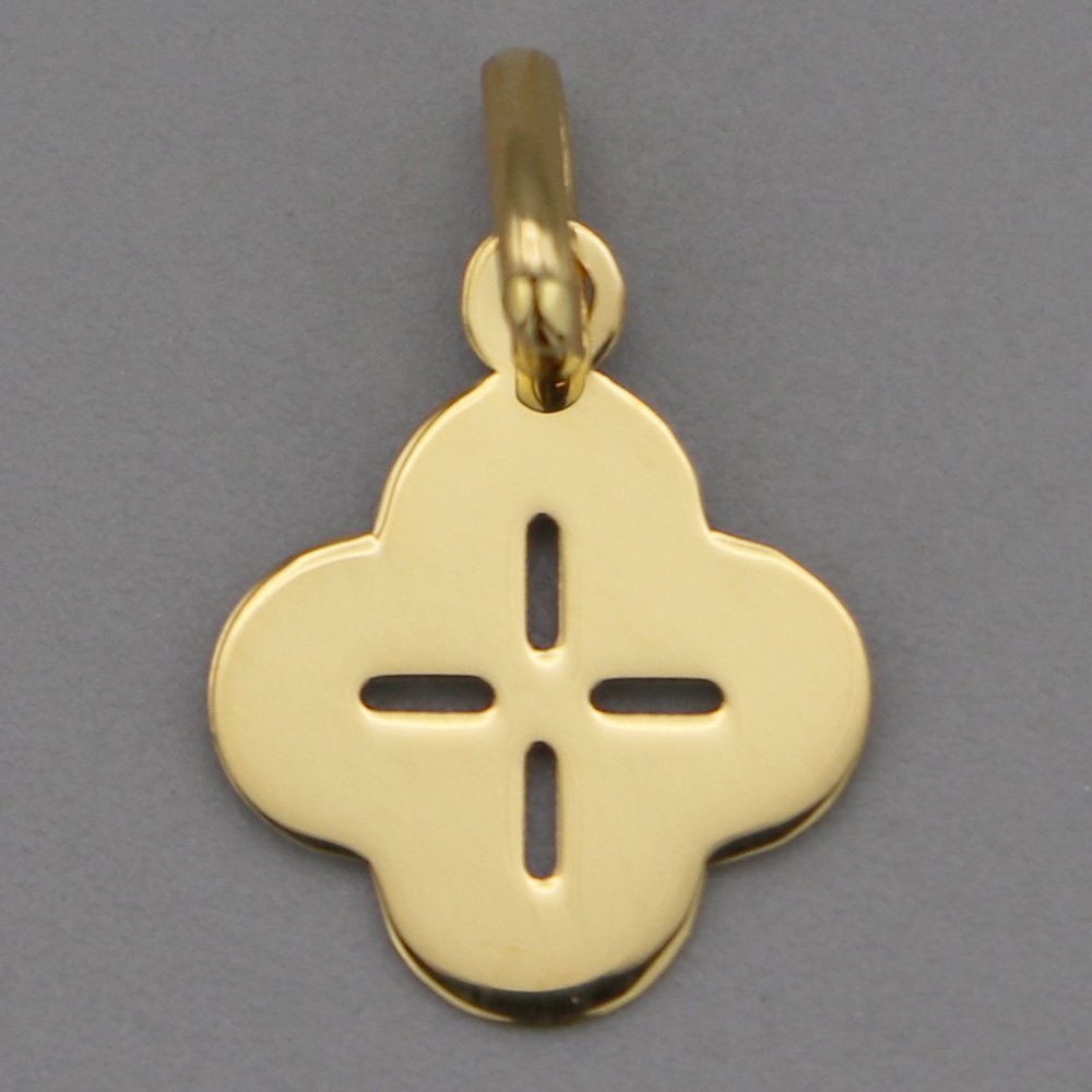 Médaille de baptême Trèfle et croix ajourée en Or jaune 18 carats